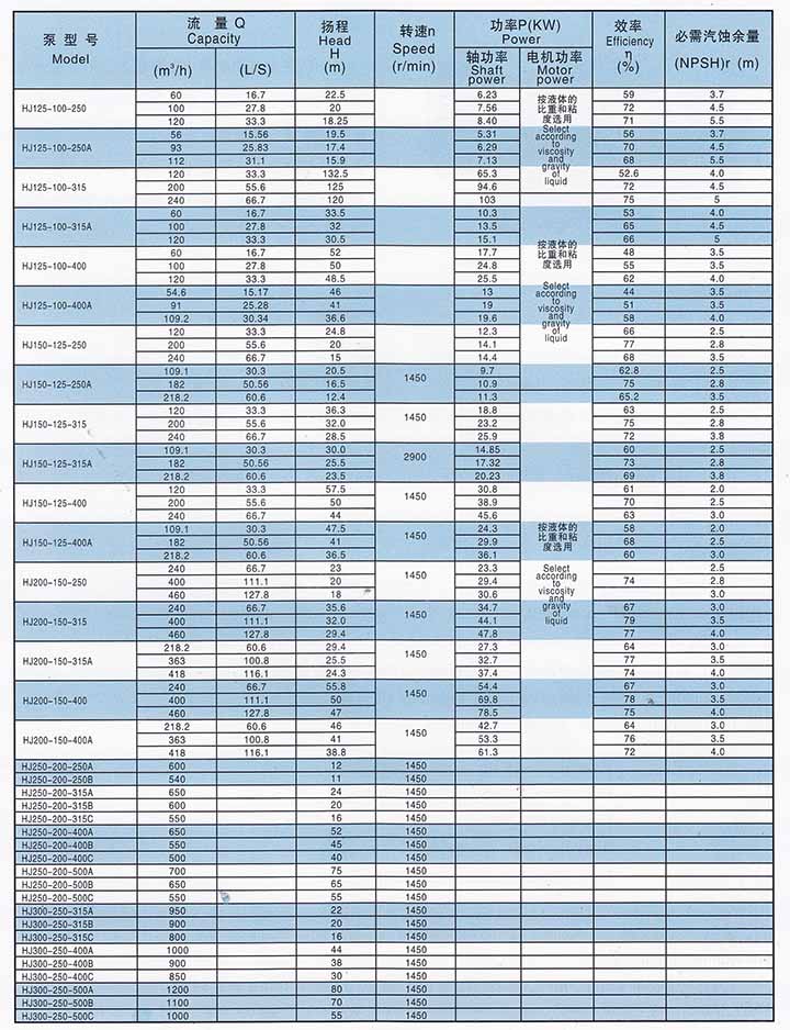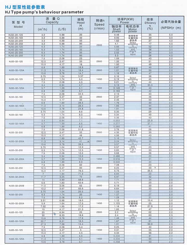 概述: HJ型單級單吸懸臂式化工離心泵是在IH系列泵的基礎(chǔ)上,參照國外技術(shù)并結(jié)合用戶實(shí)際使用后而優(yōu)化設(shè)計(jì)的新產(chǎn)品,其額定性能和安裝尺寸符合ISO2858標(biāo)準(zhǔn),制造技術(shù)條件符合ISO5199標(biāo)準(zhǔn),主要適用于化工流程中含固量小于50%之內(nèi)的漿液以及含結(jié)晶雜質(zhì)介質(zhì)的輸送。 與IH泵相比,HJ化工泵結(jié)構(gòu)具有以下特點(diǎn): 1.縮短了葉輪的懸臂,加粗了軸的直徑; 2.非對稱截面的蝸殼、泵殼無口環(huán); 3.采用三只進(jìn)口軸承; 4.裝有與國外先進(jìn)的雙端面機(jī)械密封或填料密封相似的新型密封。 由于以上結(jié)構(gòu)使該泵有以下優(yōu)越性: 1.可以輸送高粘度或含固體的介質(zhì),這時泵的效率較IH泵高; 2.非對稱截面蝸殼減少了流體的沖擊損失,縮短了泵殼尺寸; 3.增加軸的強(qiáng)度,減少了轉(zhuǎn)子的撓度,因而運(yùn)行穩(wěn)定、密封壽命長; 4.葉輪螺母與葉輪做成-體,改善了泵的入口條件,提高泵的抗汽蝕性能; 5.先進(jìn)的軸封形式,使密封效果更佳,減少了泵的泄漏; 6.可以不拆卸泵殼和葉輪的情況下調(diào)節(jié)泵的間隙,減少了維修時間,節(jié)省維修成本。